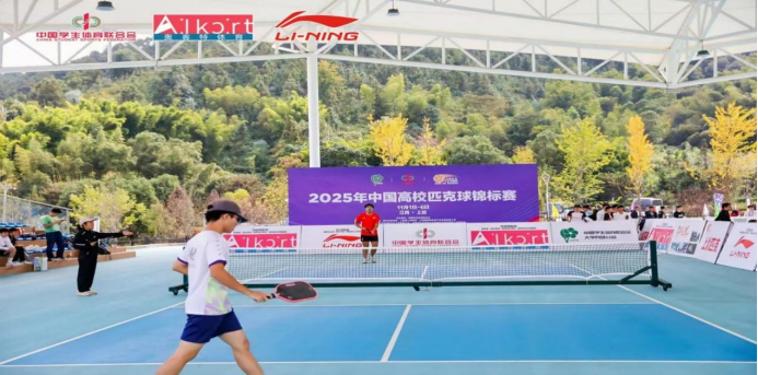 2025年11月1日-6日,由中国学生体育联合会主办,上犹县教育体育局承办,赣州市匹克球协会、上犹县犹江赛事运营有限公司协办,赣州市教育局、上犹县人民政府、江西奥客特体育产业发展有限公司支持的2025年中国高校匹克球锦标赛于江西省上犹县举办。本届赛事有近100所高校,近1000名教练员、运动员参与。我校匹克球队在教练赵乐老师、梁钊国老师指导下,有10名运动员参加比赛。