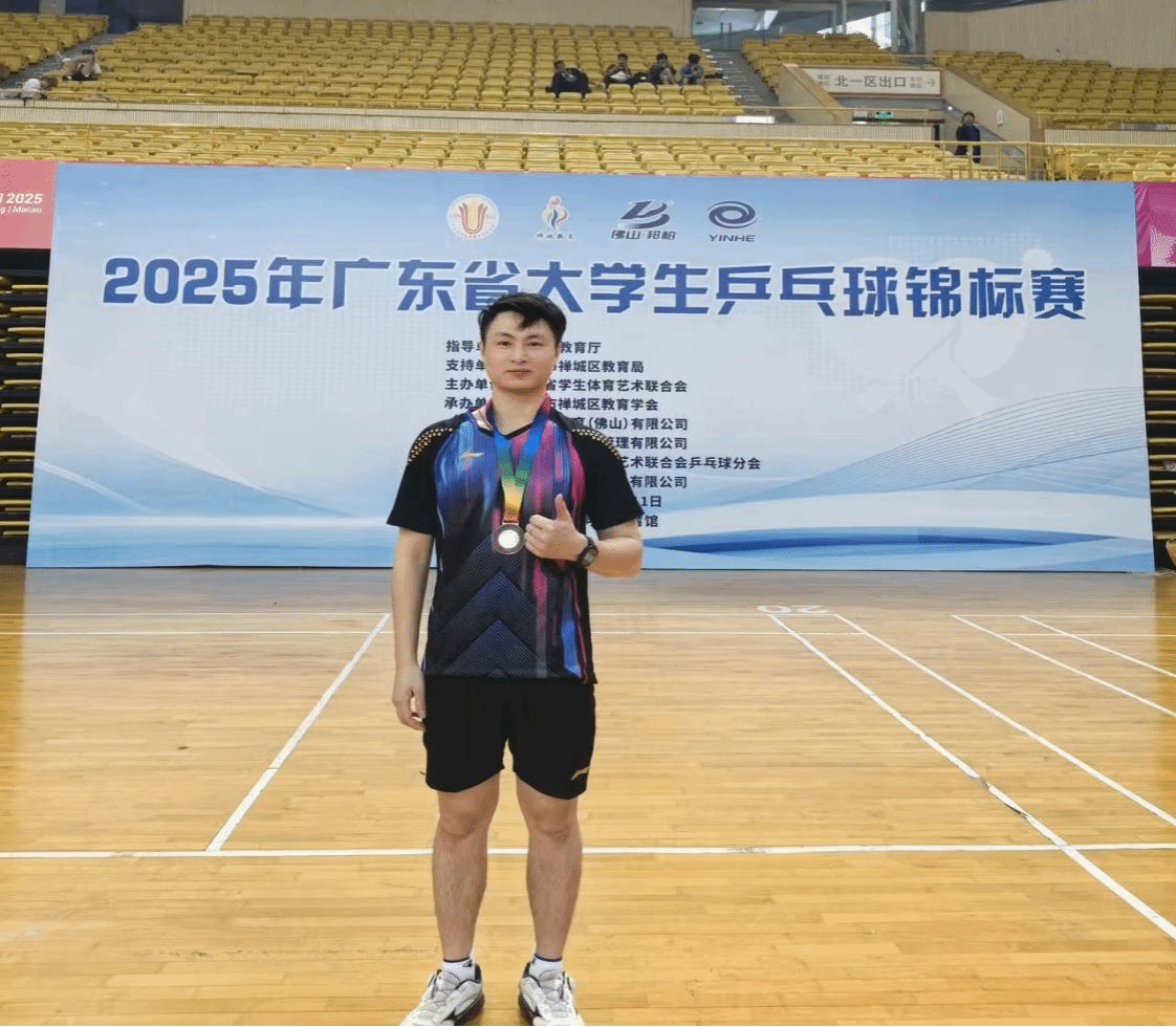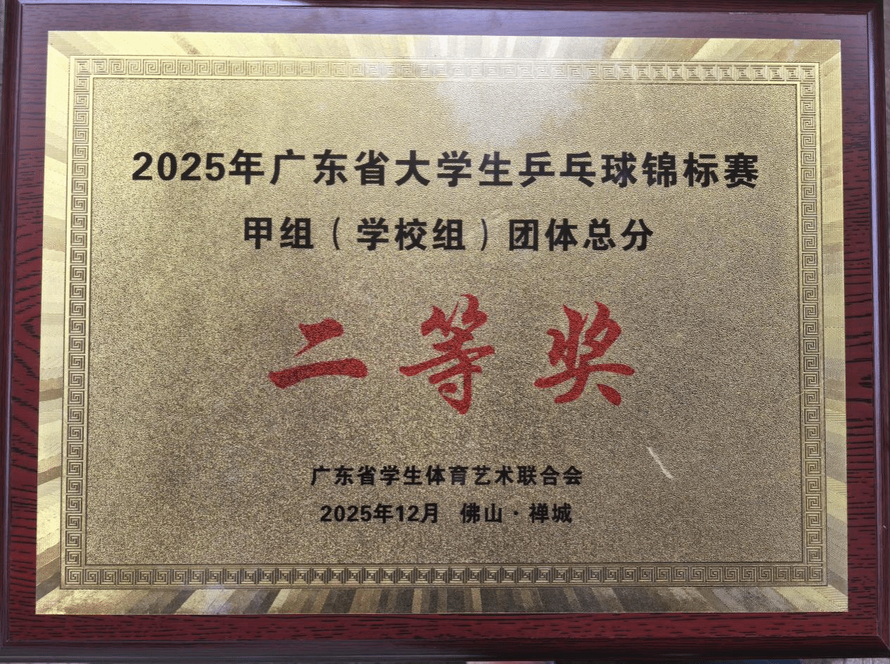 这一荣誉是校乒乓球队实力的持续彰显:继 2023 年广东省大学生乒乓球锦标赛夺得女子双打亚军后,球队再添男单季军,团体总分二等奖的亮眼成绩。荣耀背后,离不老师长期以来的悉心陪伴与辛勤付出,更离不开体育学院领导的高度重视与大力支持 —— 正是这份坚实后盾,让运动员们得以心无旁骛地刻苦训练,在赛场上全力以赴、为校争光。