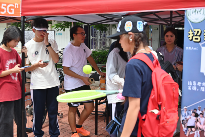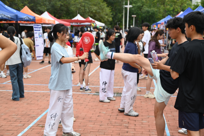 活动现场人潮涌动,气氛热烈。许多摊位前都排起了长队,2025级新同学怀着对大学生活的憧憬和对体育运动的热爱,积极与学长学姐交流,踊跃报名。不少运动队还设置了趣味互动体验环节,如篮球的定点投篮、武术的基础招式教学等,让同学们在轻松愉快的氛围中感受体育的魅力。